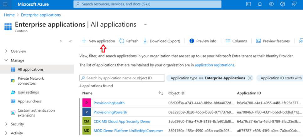 2. Go to Enterprise applications > All applications > click New application.