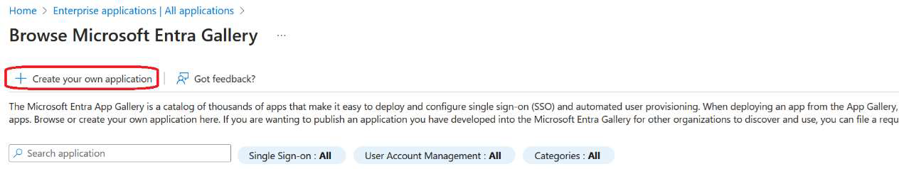 3. From the Microsoft Entra Gallery, click the +Create your own application button.