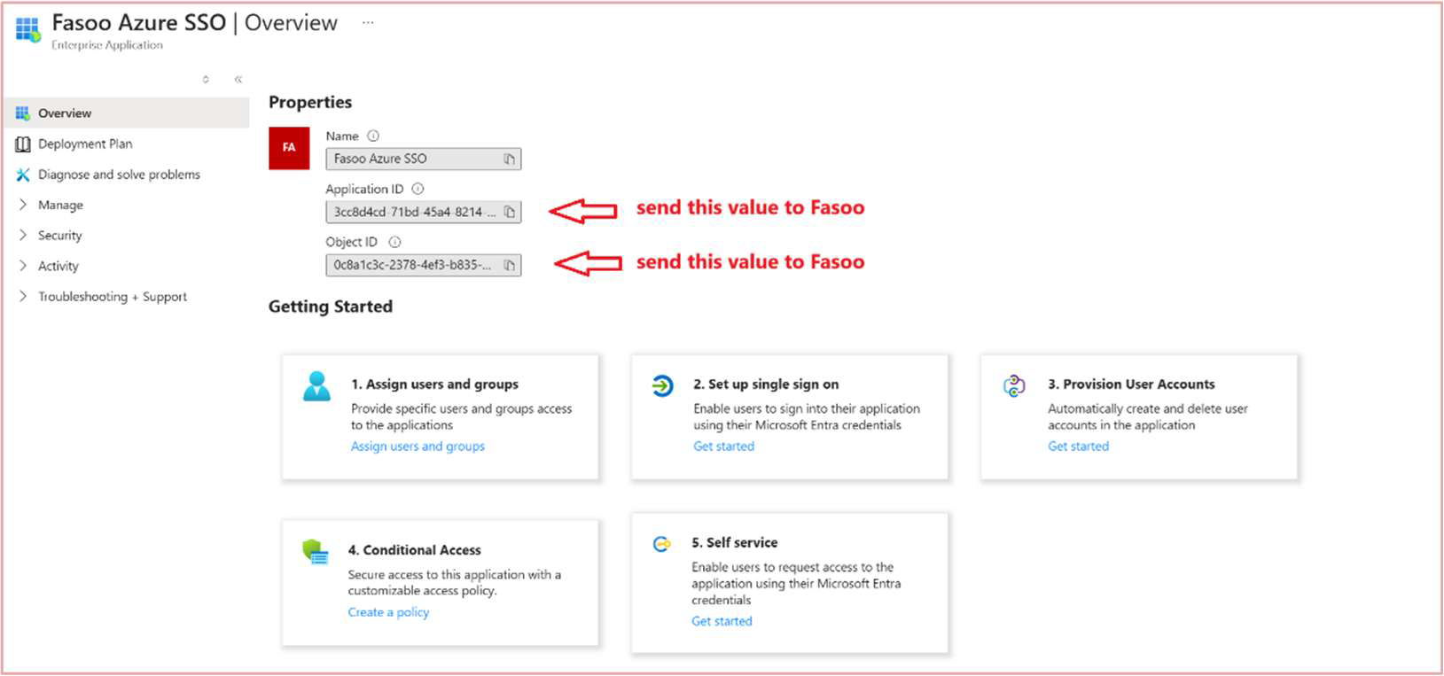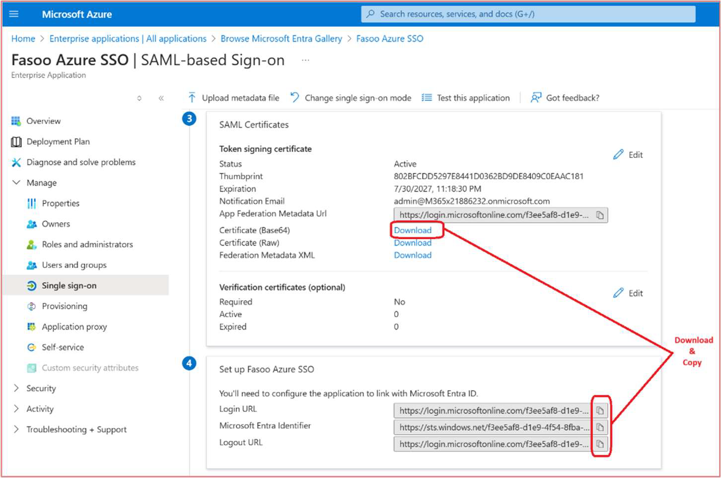 1. Navigate to Manage > Single sign-on and gather the below information (these are required deliverables).