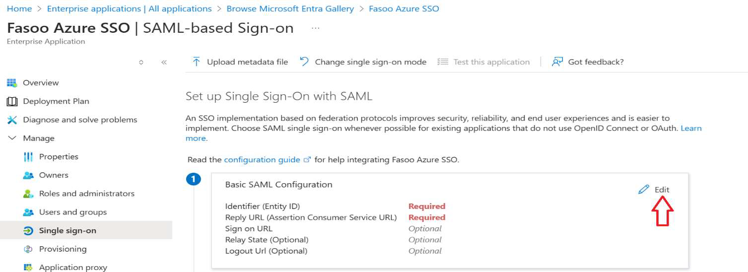 2. In the SAML-based Sign-on window, click Edit within Basic SAML Configuration.