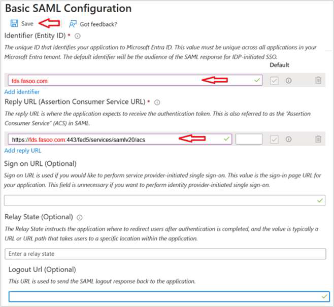 Reply URL (Assertion Consumer Service) | https://fds.fasoo.com:443/fed5/services/samlv20/acs |