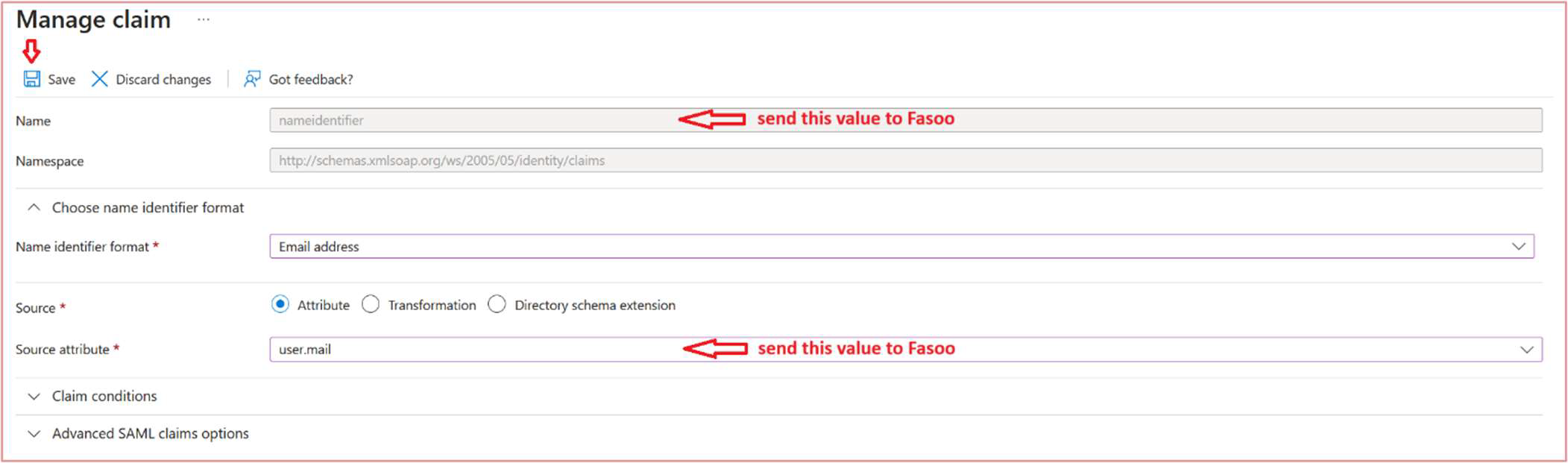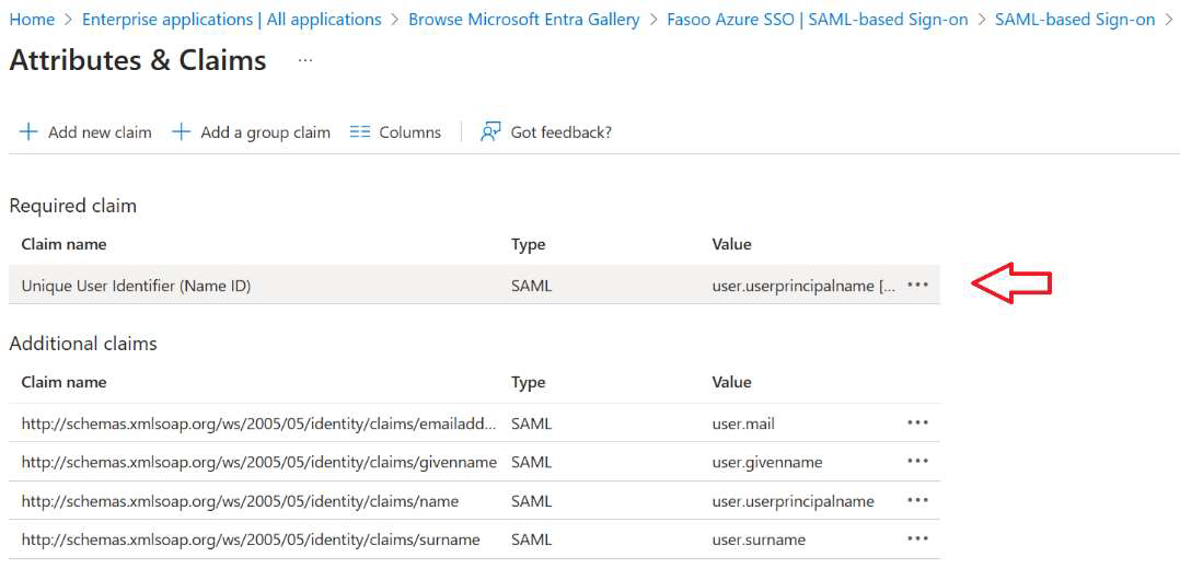 Send the claim Name & Source attribute to your Fasoo technical team (these are required deliverables).