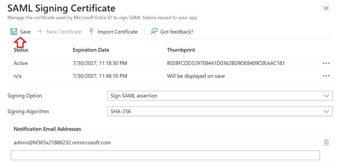 1.5 Create SAML Signing certificate