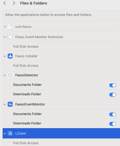 • Installs the Fasoo Installer application to: /Applications/Fasoo Installer.app